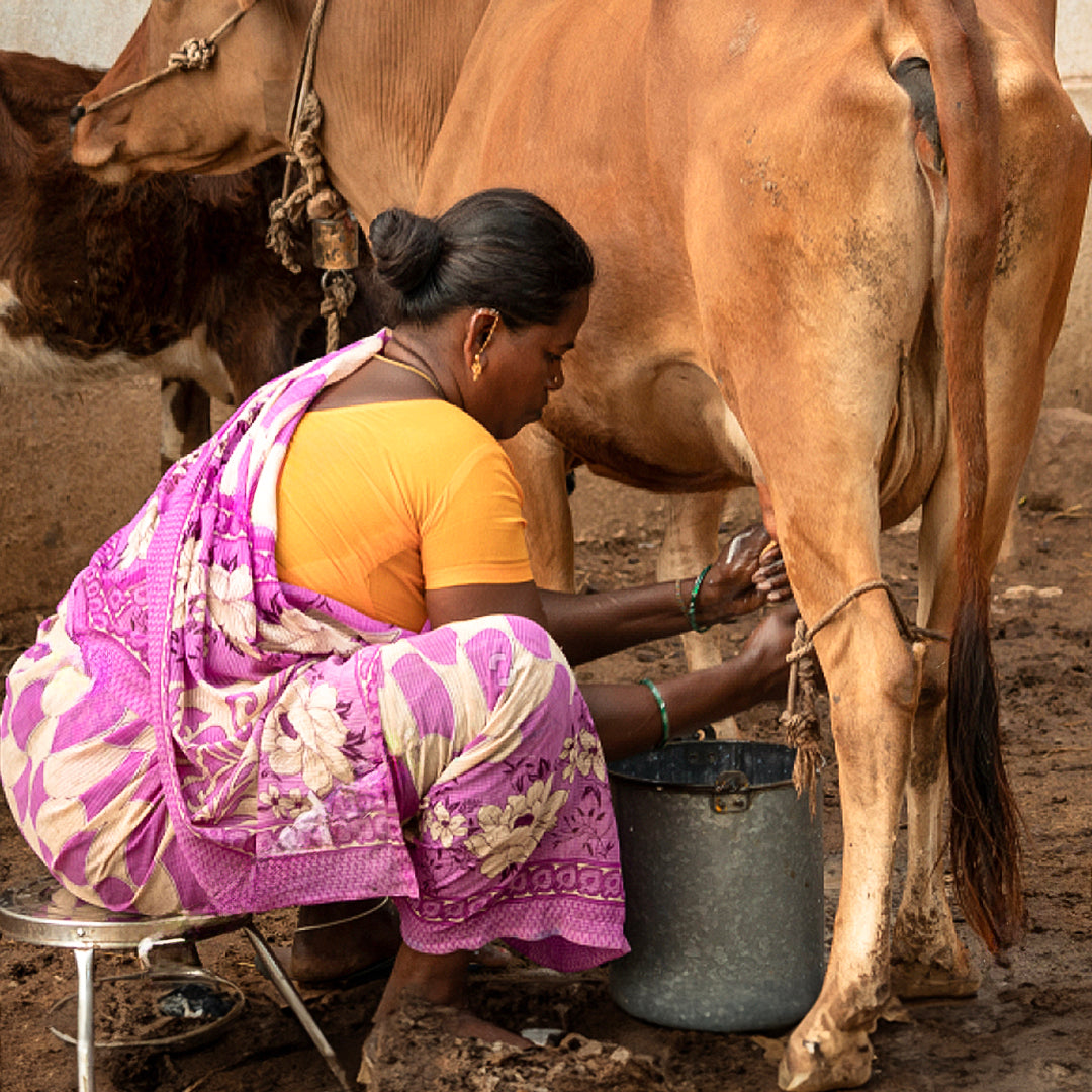 At Tamil Milk, we don't just collect milk; we build lasting relationships with our farmers. We go the extra mile by providing special cattle feed mixes to keep their cows happy and healthy and assist them in securing loans to expand their farms. This strong support system ensures a steady flow of fresh, top-quality milk for you and your family for generations to come.